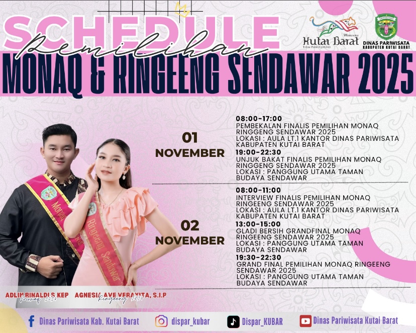 Sebagai penutup rangkaian, ajang Pemilihan Monaq dan Ringeeng Sendawar 2025 akan menjadi sorotan tersendiri. Selain menampilkan bakat dan wawasan budaya para finalis, kegiatan ini juga menjadi simbol regenerasi duta budaya Kutai Barat.