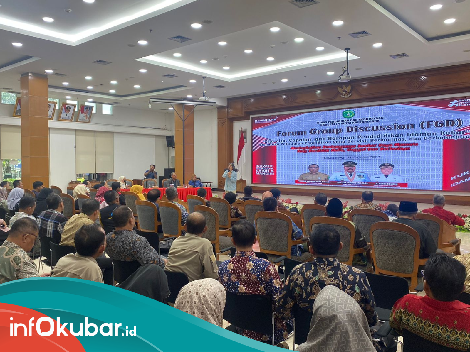 TENGGARONG, Infokubar.id – Dinas Pendidikan dan Kebudayaan (Disdikbud) Kukar menggelar Focus Group Discussion (FGD) dengan tema “Cita-cita Capaian dan Harapan Pendidikan Idaman Kukar” di ruang serba guna Kantor Bupati, Sabtu (21/10/2023).