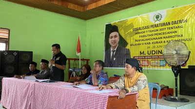 SENDAWAR, Infokubar.id – Anggota DPRD Kaltim M. Udin terus konsisten sosialisasikan peraturan daerah (Perda) Nomor 7 Tahun 2017 tentang Fasilitasi Pencegahan Penyalahgunaan Narkotika ke masyarakat. Pada kesempatan kali ini politisi muda Golkar itu melaksanakan Sosper di Kampung Sumber Rejo, Kecamatan Sekolaq Darat, Kabupaten Kutai Barat (Kubar), Sabtu (25/6/2022).