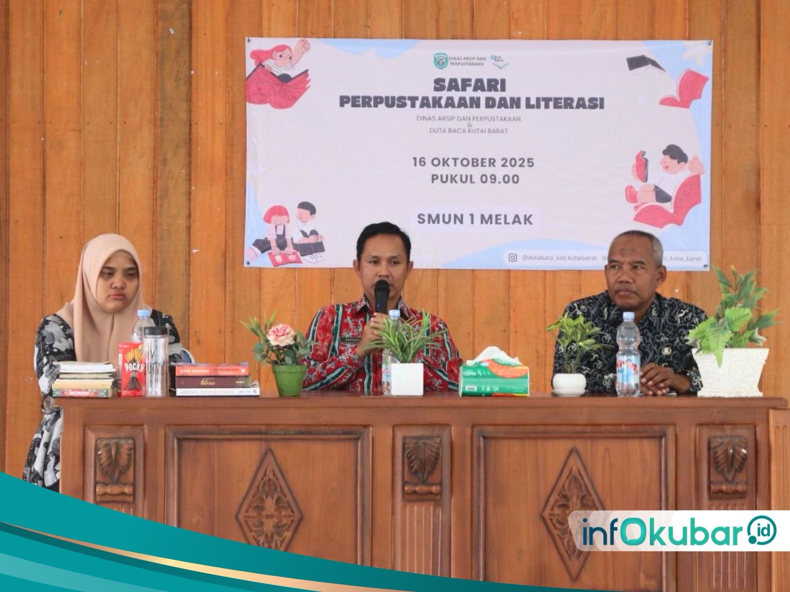 SENDAWAR, Infokubar.id — Upaya menumbuhkan minat baca di kalangan pelajar terus digalakkan oleh Dinas Arsip dan Perpustakaan (Disarpus) Kabupaten Kutai Barat. Melalui program Safari Perpustakaan dan Literasi, Disarpus bersama Duta Baca Kutai Barat kembali menyambangi sejumlah sekolah, salah satunya SMAN 1 Melak, Rabu (16/10/2025).