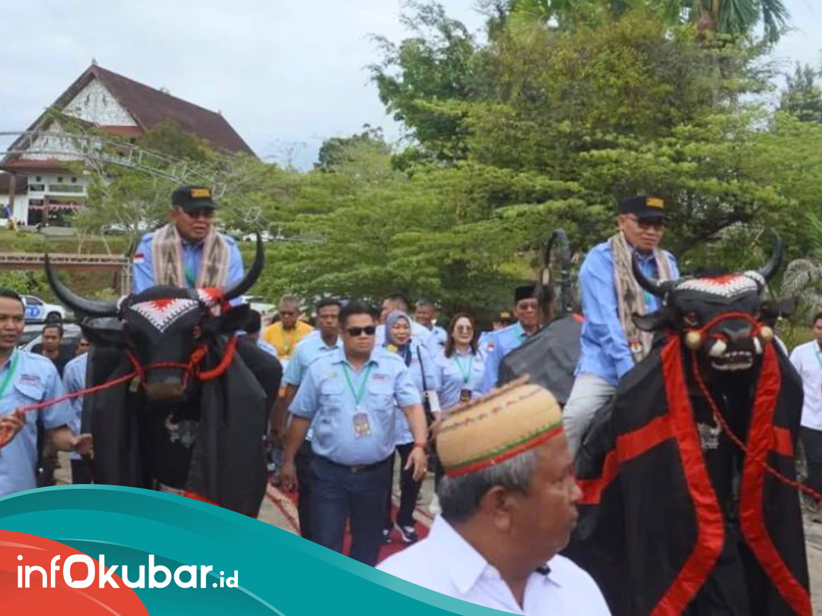 Keduanya memasuki halaman KPU dengan menunggangi banteng. Rombongan datang ke Kantor KPU Kubar bersama iring-iringan ratusan mobil dan ribuan pendukungnya sekitar jam 09.15 pagi.