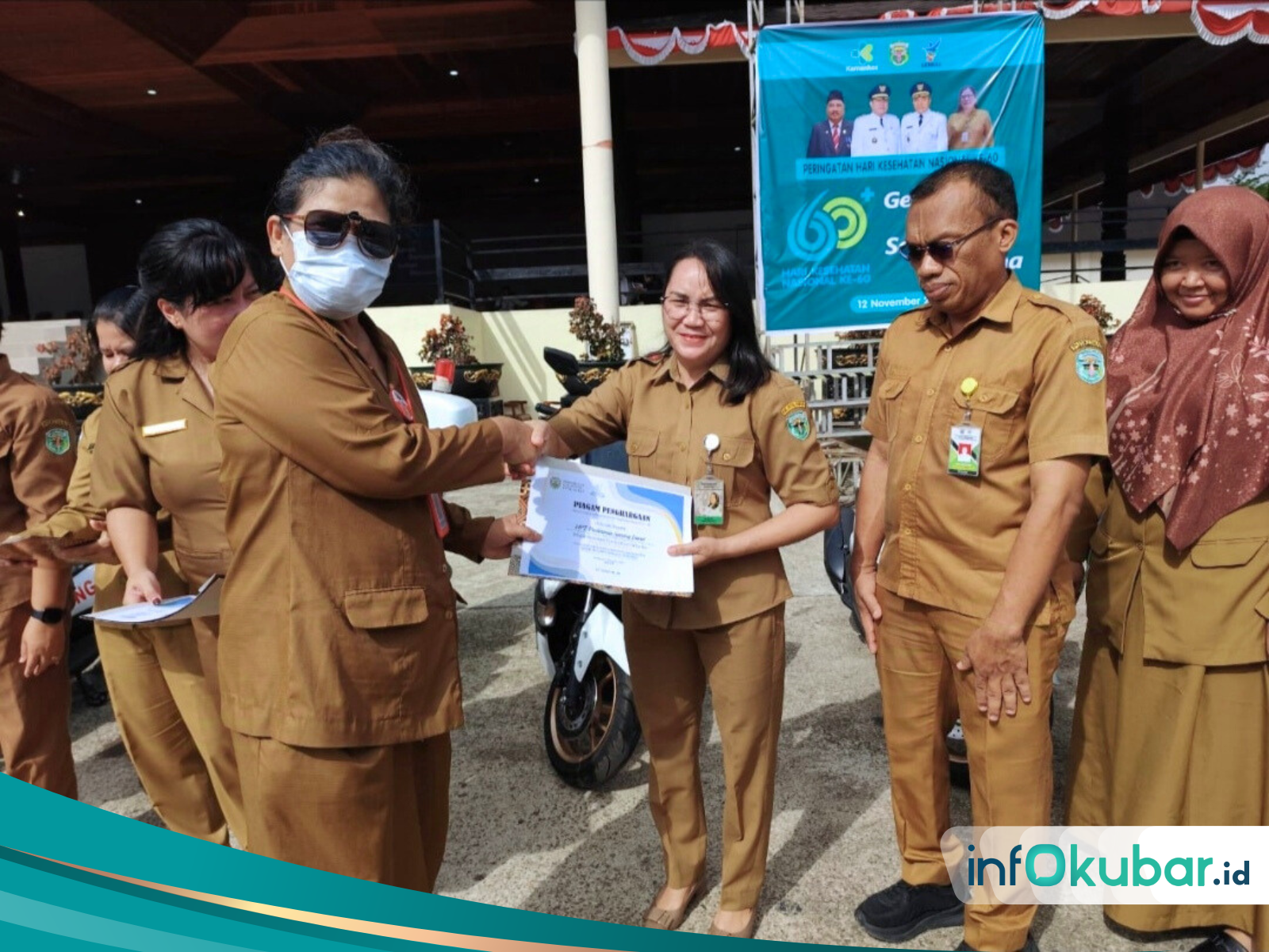 Selain penyerahan bantuan kendaraan operasional, pada upacara peringatan HKN ke-60 ini juga turut dirangkai dengan penyerahan penghargaan bagi puskesmas. Turut hadir dalam upacara ini, Kepala BPBD Kubar, Kadisdik Kubar, Kepala Puskesmas, perwakilan RSUD HIS serta Kepala BPJS Kesehatan perwakilan Kubar. (Adv/Diskominfo Kubar)